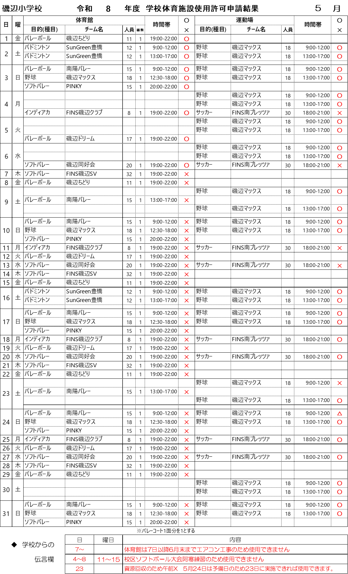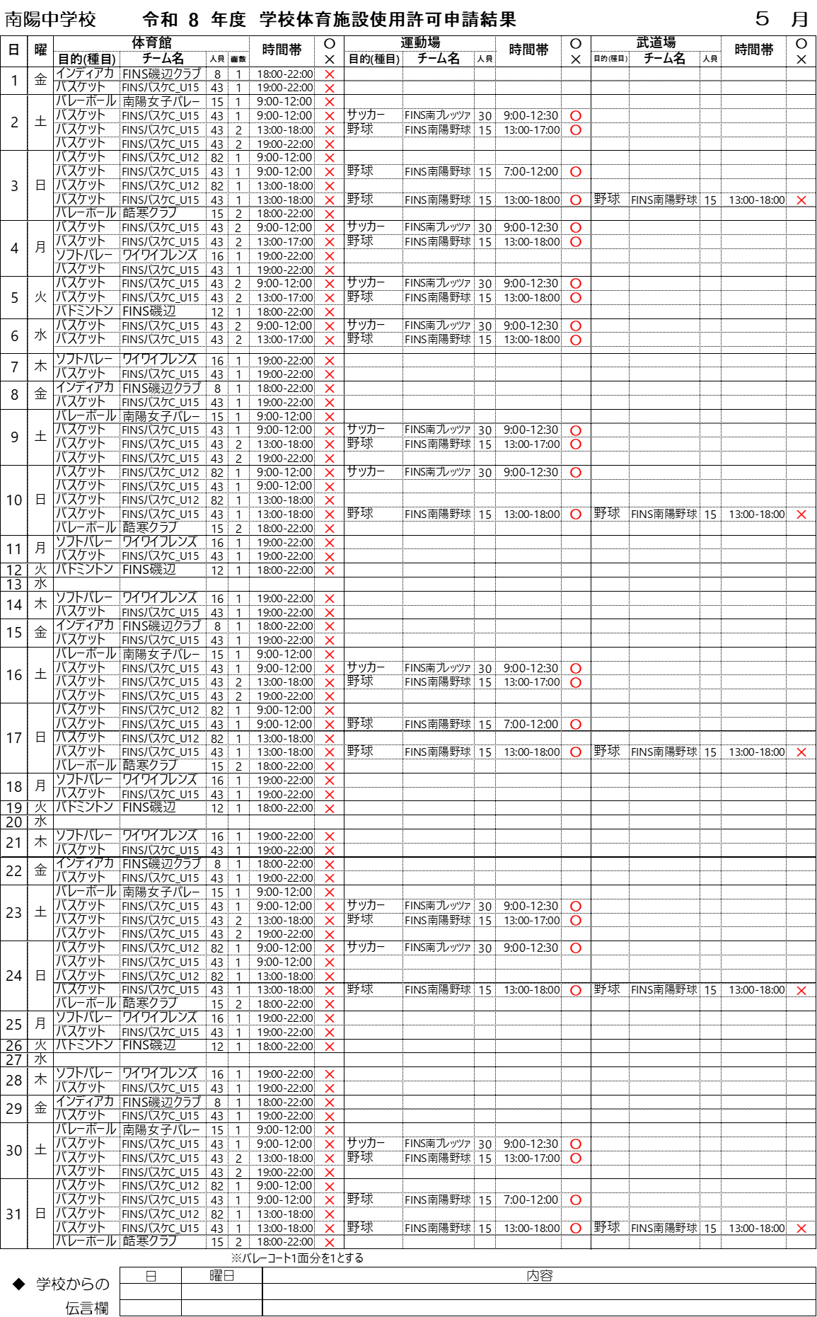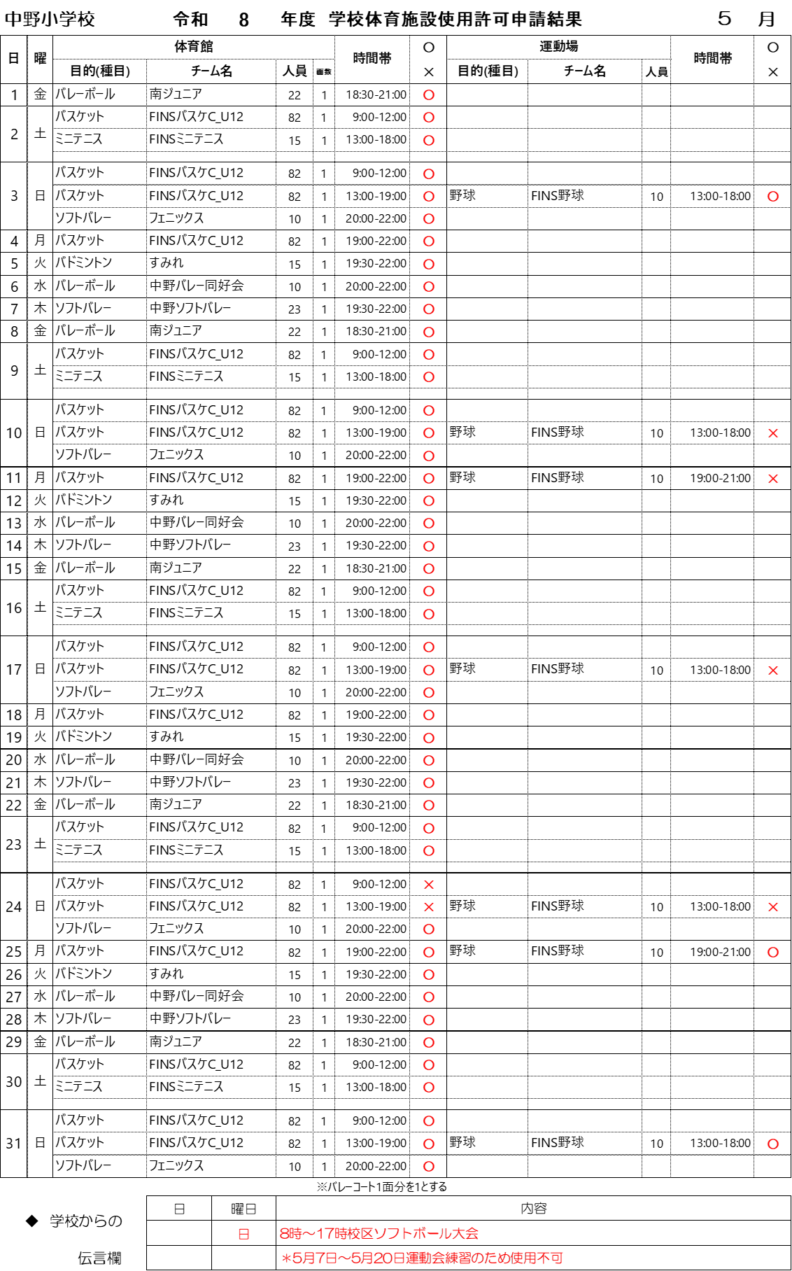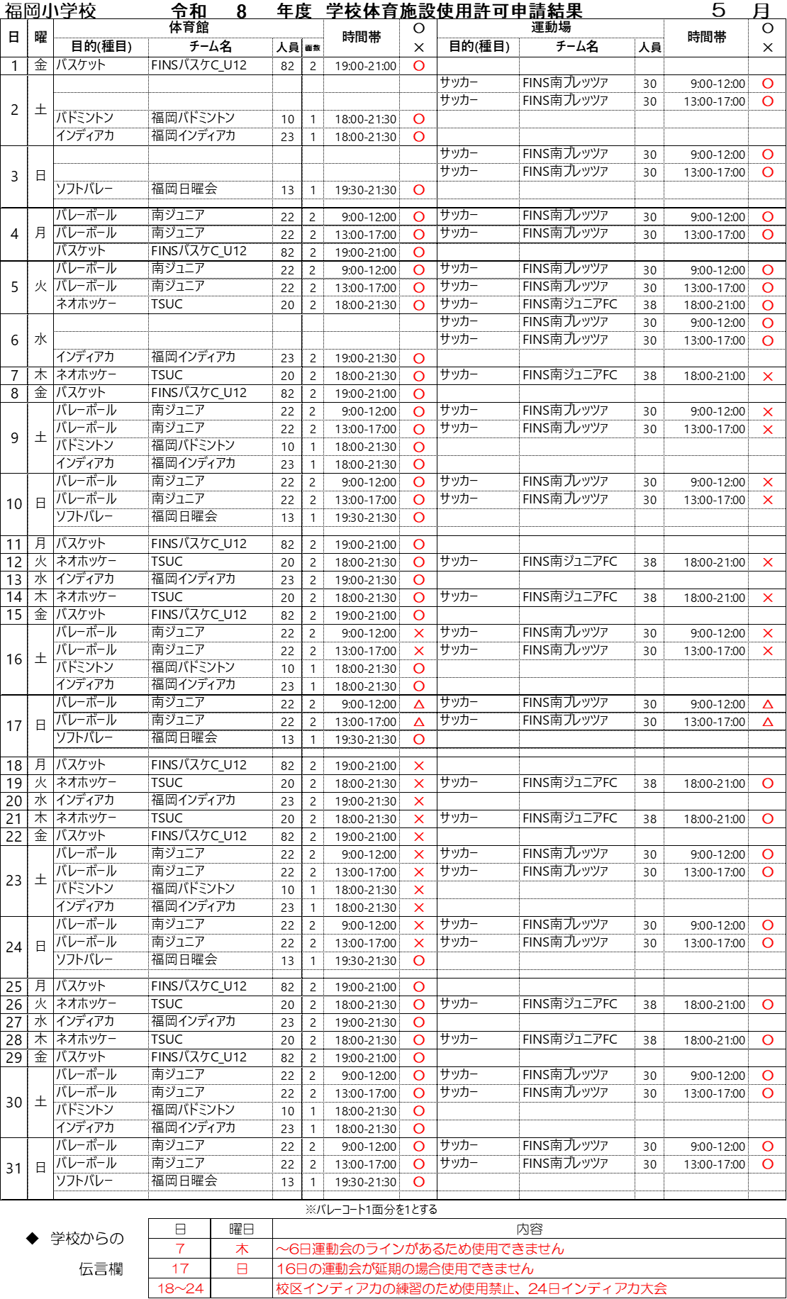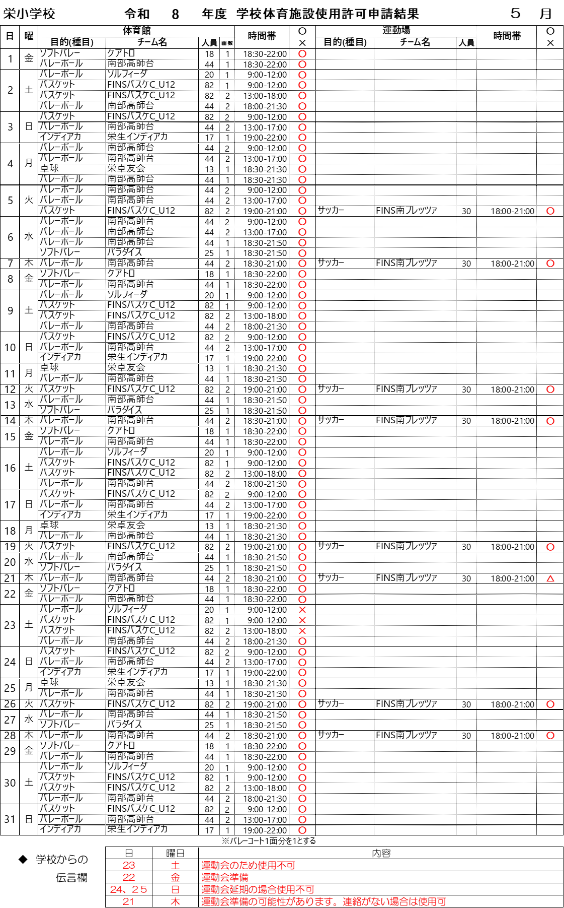 学校施設使用申請 2026年 5月